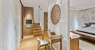 查看詳情在美觀性和實(shí)用性之外,如今的人們對(duì)裝修的環(huán)保性也很關(guān)注。采用竹制的隔斷,既起到分隔的作用,光線通透,也方便空氣流通,視覺上更能使整個(gè)居室充滿了原始而又自然的氣息。