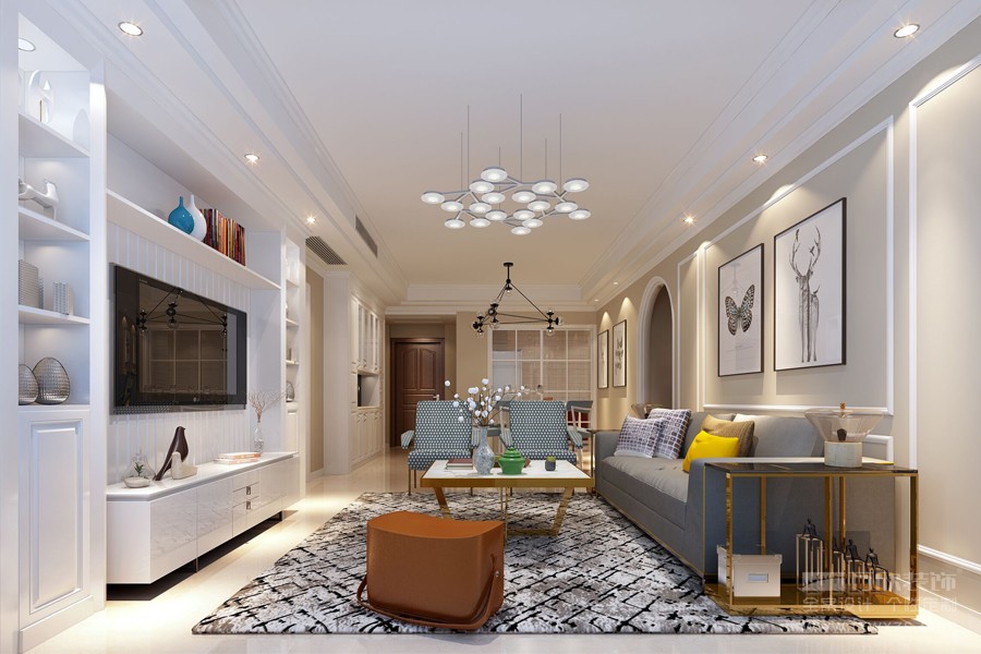為了突出家飾的色彩,空間以白色調(diào)為基底是再合適不過了。米色背景墻搭配大量素色動物畫飾,撲來滿屏的田園氣息,以保留的拱形門將空間相連,讓濃濃的美式情懷隨之蔓延整個空間。