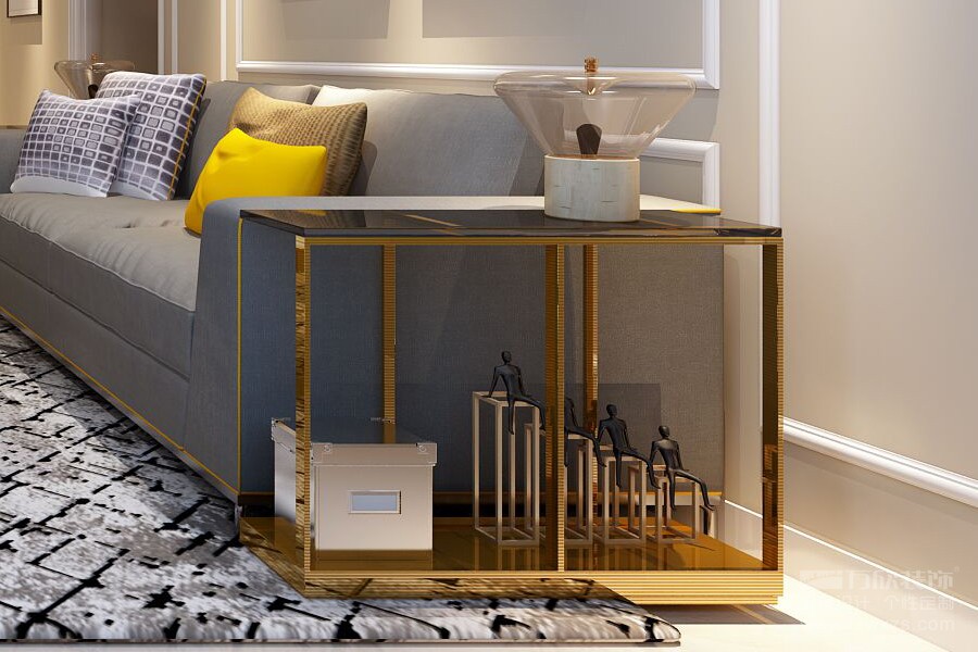 在家具的選擇上,并沒有出現(xiàn)碎花布藝等美式元素,而是選擇了純灰色系沙發(fā)搭配線條利落的古銅色茶幾,讓自然與清新之中不失現(xiàn)代的質(zhì)感簡約。
