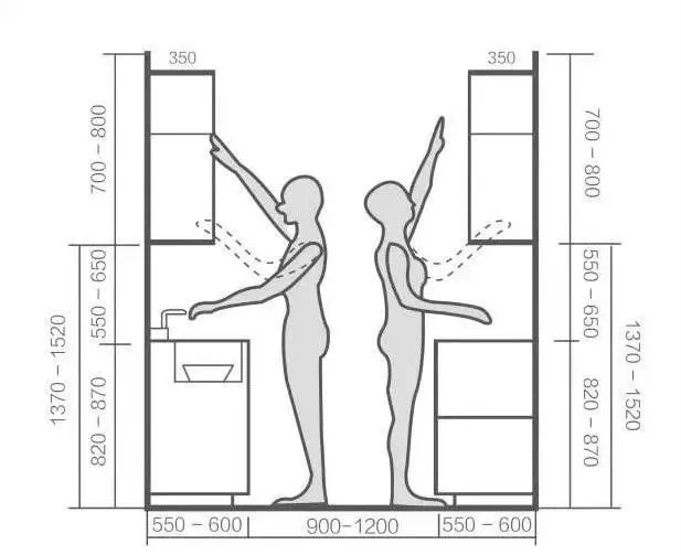 廚房的基本動(dòng)線:洗菜(水槽)→切菜(臺(tái)面)→炒菜(爐灶)按順序進(jìn)行,可以順時(shí)針,也可以逆時(shí)針。