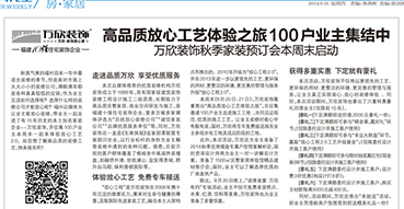 萬欣裝飾2014秋季放心家裝預(yù)定會華麗綻放
