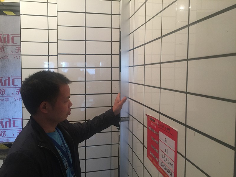 檢查瓷磚鋪貼平整度