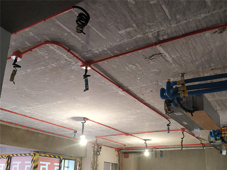 △電線采用金貂或太陽(yáng)牌(二選一)阻燃電線,線頭以螺旋狀的形式盤(pán)旋在吊頂上,井然有序。