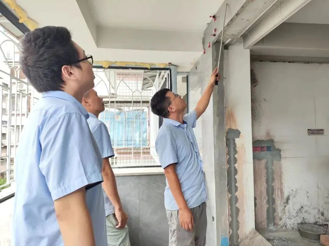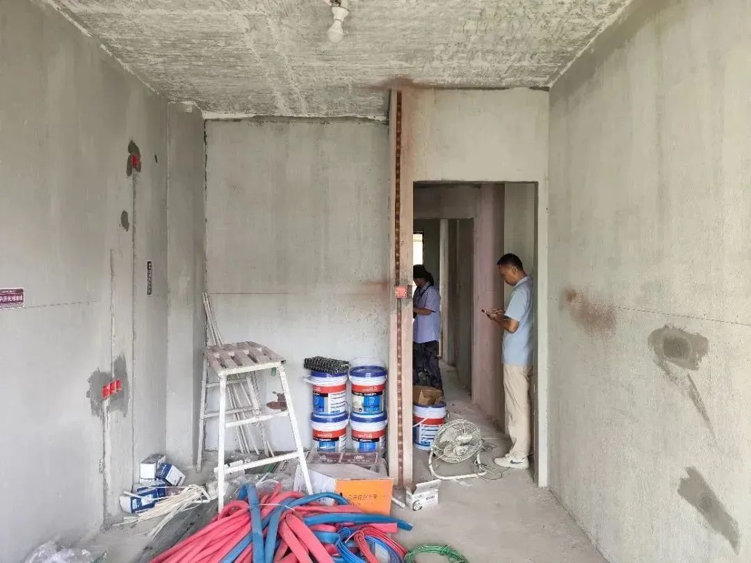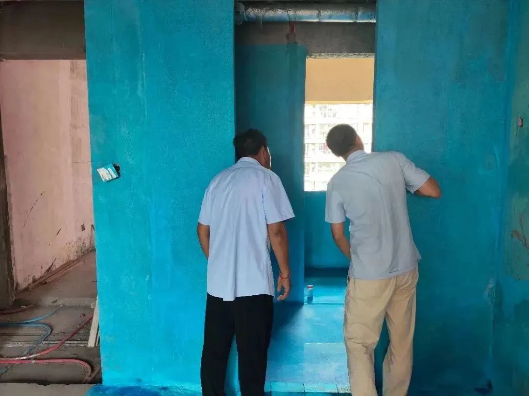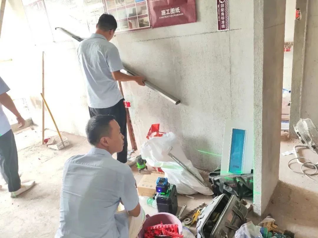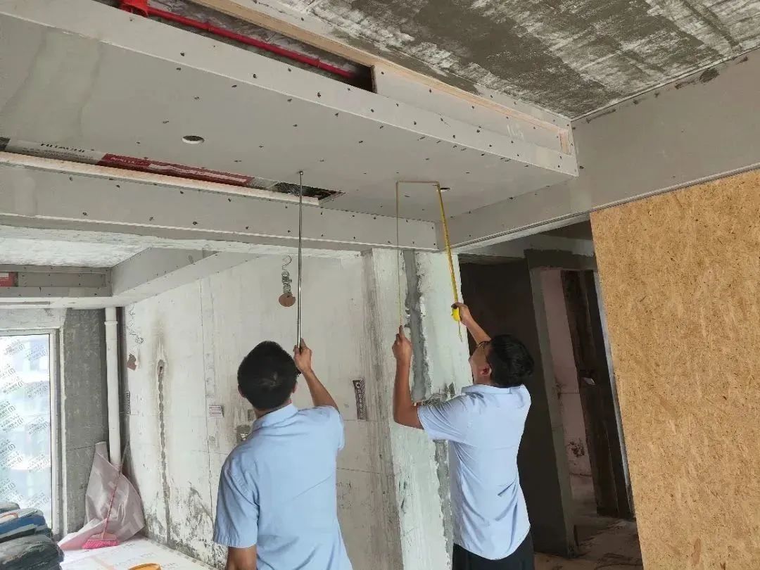 △ 現(xiàn)場(chǎng)用2米長(zhǎng)的靠尺,檢查粉刷后墻面平整與地面是否平整,防止出現(xiàn)空響等問(wèn)題,影響工程質(zhì)量和進(jìn)度。