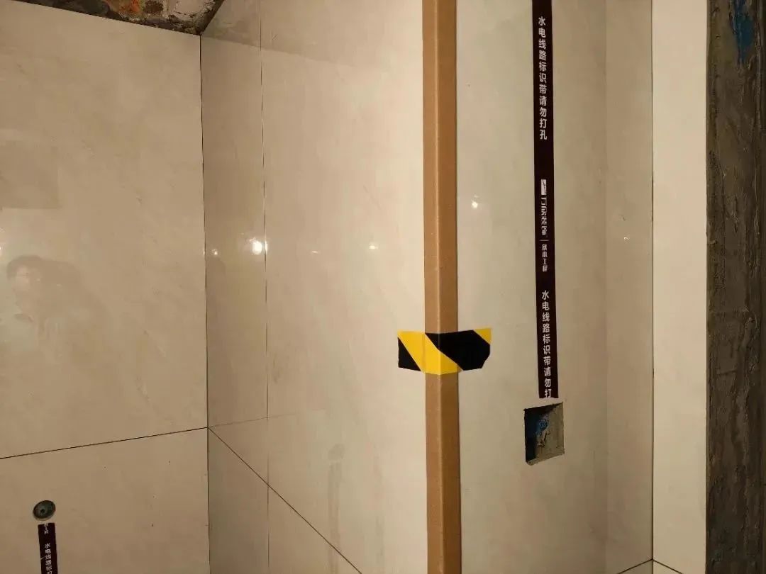 △粘貼水電標(biāo)識(shí)這一步很重要。在瓷磚背后都是有很多水電管,后期安裝時(shí)稍不注意就會(huì)打到它們。粘貼標(biāo)識(shí),可以降低后期施工產(chǎn)生管道破損的風(fēng)險(xiǎn)。