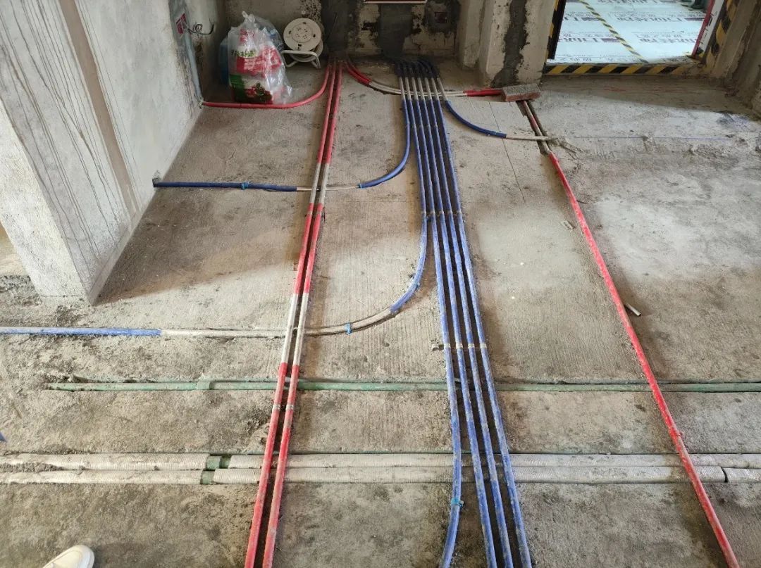 △水電管鋪設(shè)規(guī)范檢查,線路走向非常重要,水電管走向橫平豎直,平行于墻面的管線需距離墻面一定距離,電路布置要考慮到后期的用電安全。強(qiáng)弱電平行鋪設(shè)時(shí),間距≥30cm,強(qiáng)弱電交叉鋪設(shè)時(shí),需要用錫箔紙將線路包裹起來,預(yù)防生活用電帶來的干擾。