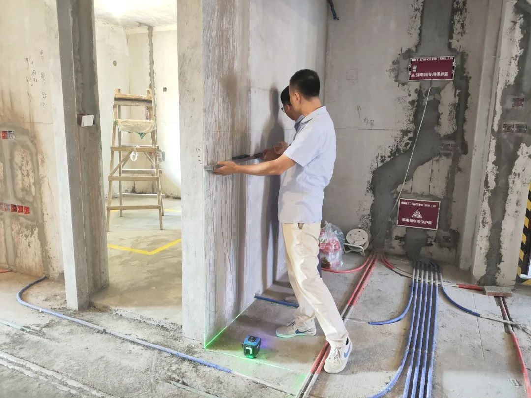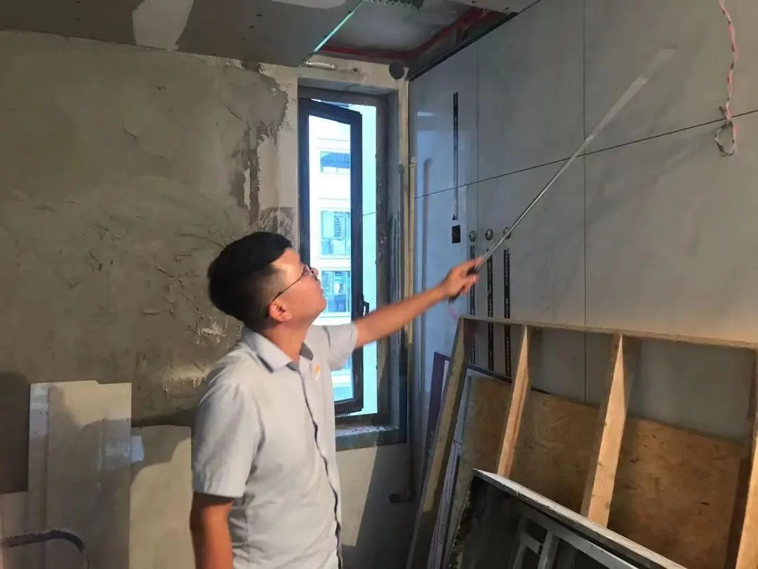 △轉(zhuǎn)角垂直的檢查也是檢驗(yàn)中的一個(gè)關(guān)鍵點(diǎn)之一。此時(shí)我們會(huì)重點(diǎn)檢查陰陽角,因?yàn)檫@關(guān)系到后期的家居擺放、衣柜、浴柜、櫥柜安裝等。若轉(zhuǎn)角不垂直,不僅會(huì)影響視覺體驗(yàn),還會(huì)影響結(jié)構(gòu)的穩(wěn)定性。
