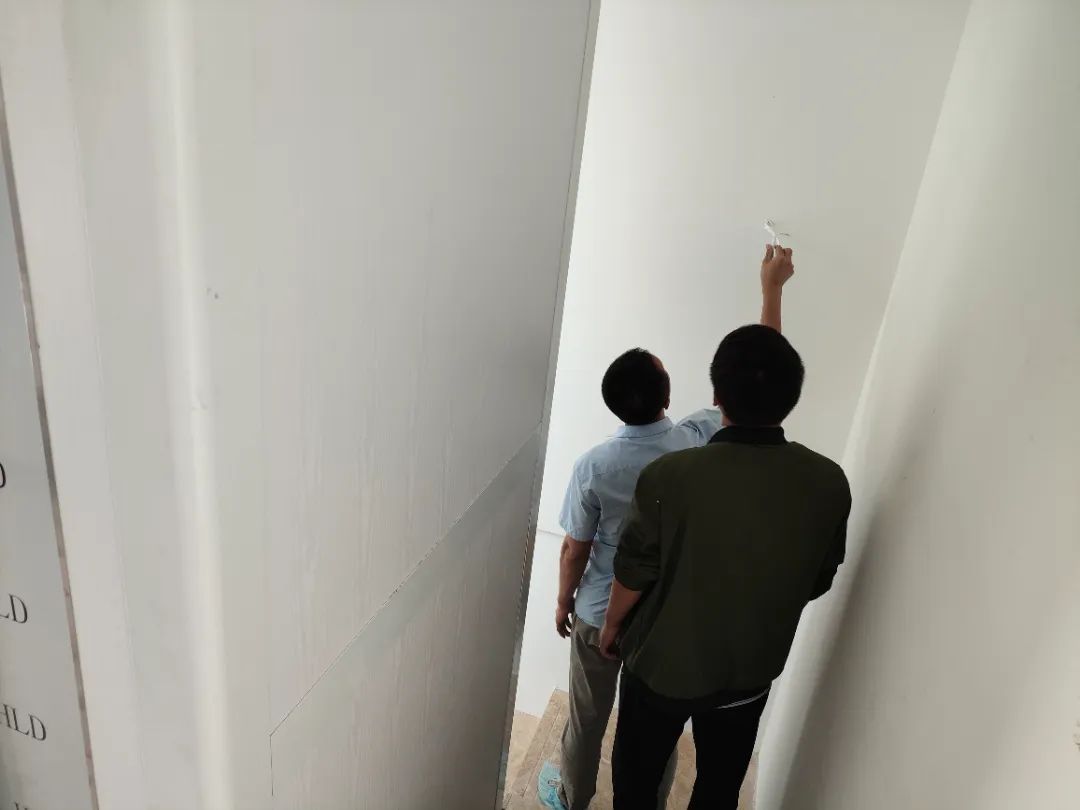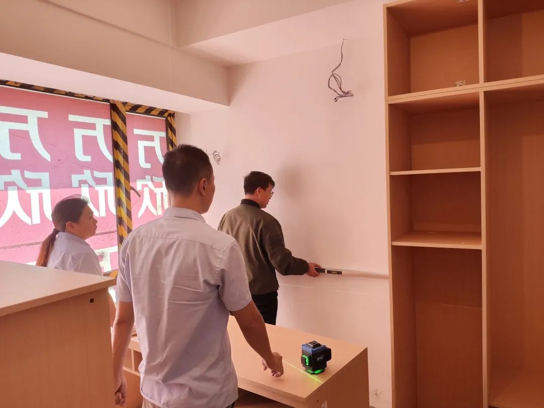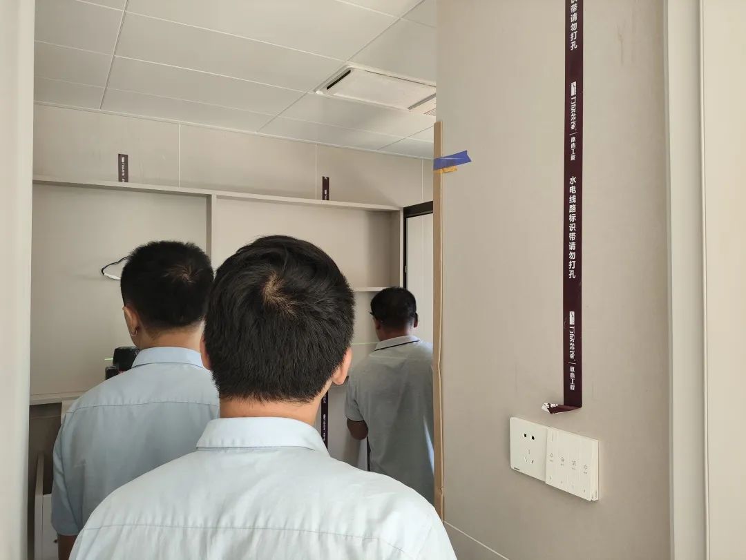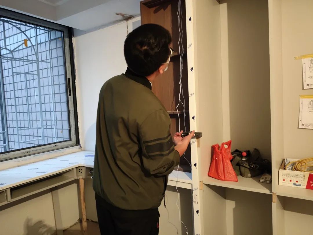 △現(xiàn)場(chǎng)對(duì)柜子進(jìn)行仔細(xì)檢查,確保業(yè)主入住后的正常使用。
